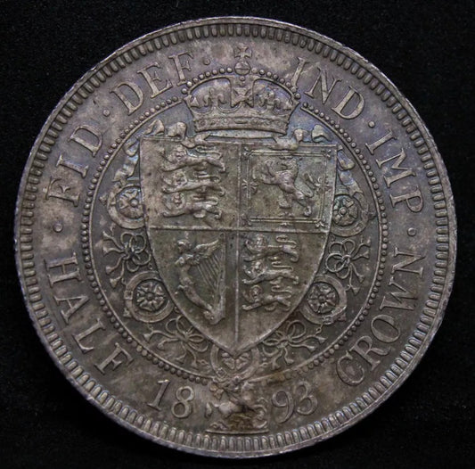 1/2 Crown 1893 Early Strike. Queen Victoria. S.3938, Hairlines in fields