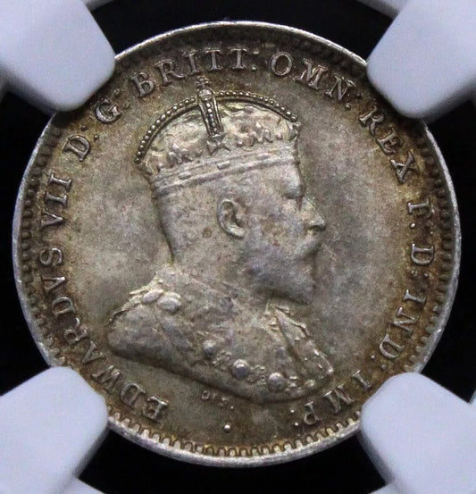 1910 3 Pence, Australia Silver Coin. King Edward Vii. BU NGC MS65 KM-18 #2