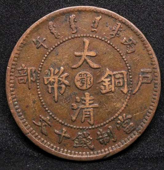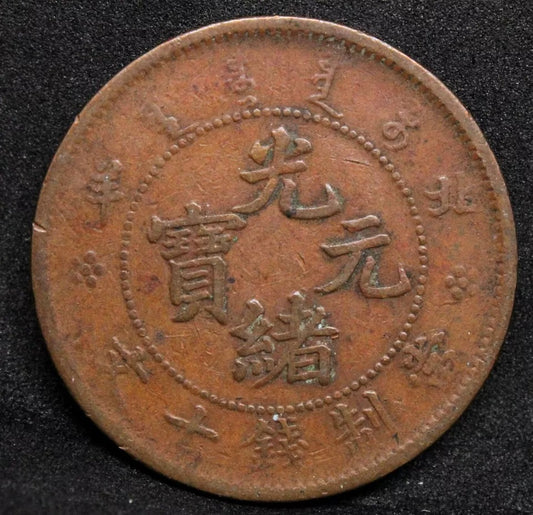 1908 10 Cash Kiangnan Provonce China/chinese Coin Extra Dash Aftr Cash K.N 77 #2