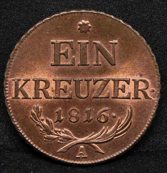 1816-A AUSTRIA 1 KREUZER .NGC MS 65 RB SOLD..