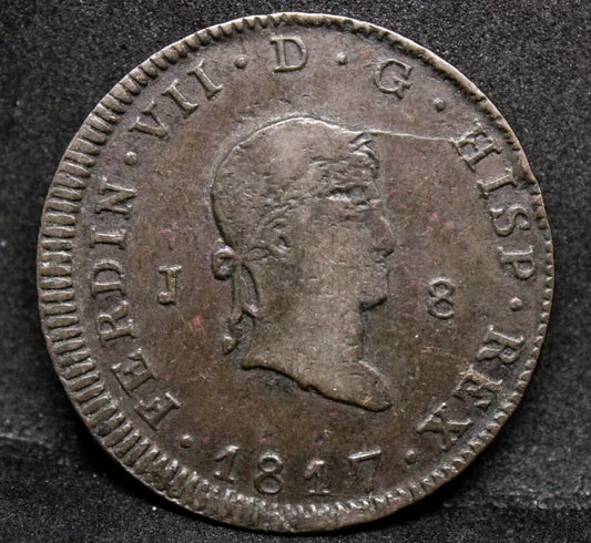 1817-J 8 Maravedis, Spain. Ferdinand VII. KM-461. GVF