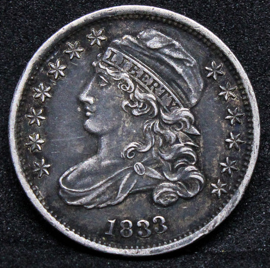 1833 10 cents (dime) USA Capped Bust, united states silver coin, toned aUNC