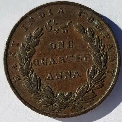 1830 1/4 Quarter Anna, East India Company. KM-231.1 EF