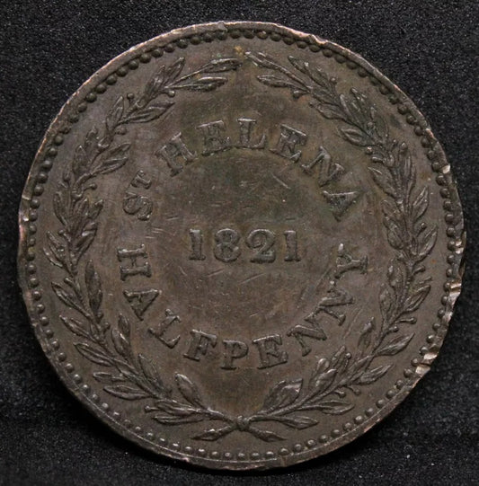 1821 Saint Helena & Ascension - British East India Company 1/2 Penny Coin KM#A4