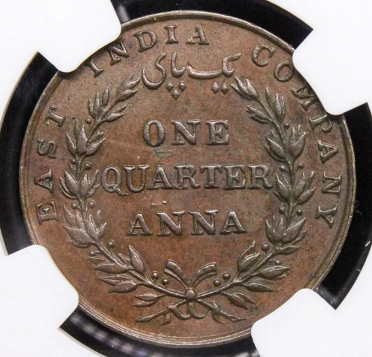 1835 India-British 1/4 Anna KM 446.2 East India Company UNC, NGC MS63 BN