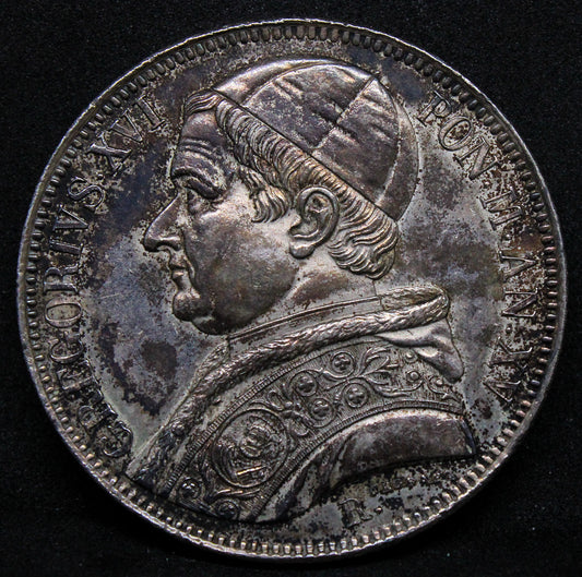 1845 Scudo, Papal States Silver crown. Gregory XVI. KM-1324. UNC