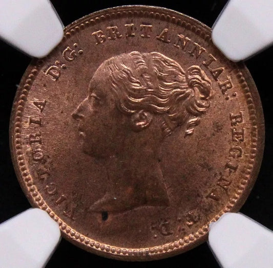 1844 1/2 farthing, Victoria young head colonial coinage UNC+lustre NGC MS62RB
