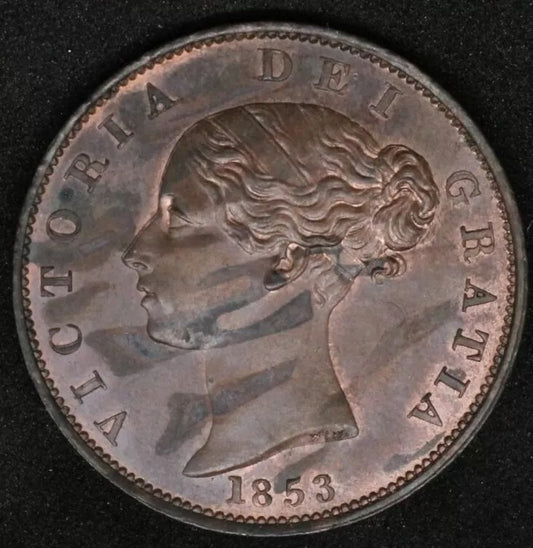1853 1/2 Penny Britain, Queen Victoria, UNC