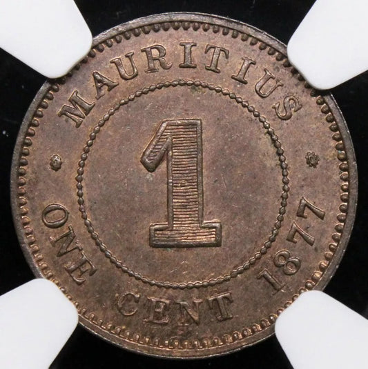 1 Cent, 1877 Mauritius. Queen Victoria.KM-7. UNC MS64 BN SOLD..