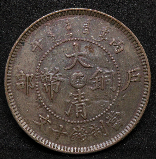 1908 10 Cash Kiangnan Provonce China/chinese Coin Extra Dash Aftr Cash K.N 77 #2