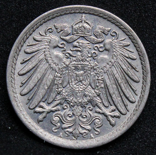 1906 5 pfennigs, Germany. William II issue. KM-11 UNC