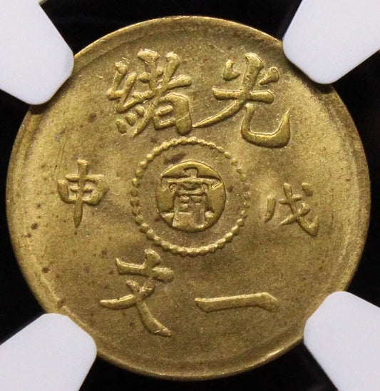1908 Kiangnan 1 Cash Bronze, CL-KN.74 Y.7K (Extended) BU, lustrous NGC MS64