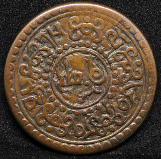 1918 Tibet Sho. Copper coin. Y#21. Error with ghosting on reverse