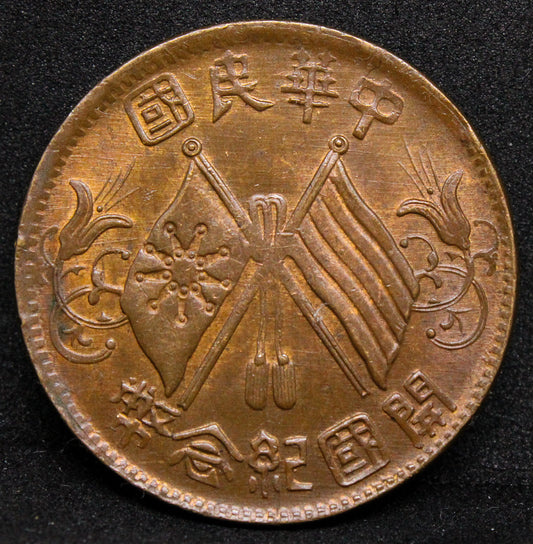 1912 CHINA 10 CASH 2 CIRCLES-7 DOT ROSETTES COMMON FLOWER .NGC MS 64 BN