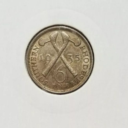 1935 Soutern Rhodesi.a 6 Pence George V UNC SOLD..