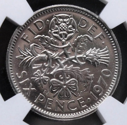 6 pence 1970 Proof. Elizabeth II. NG.C PF70, perfect grade. SOLD..