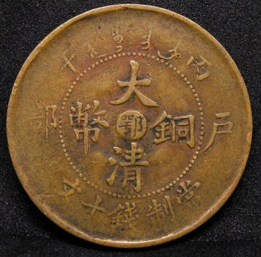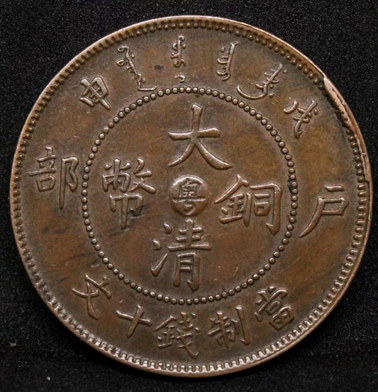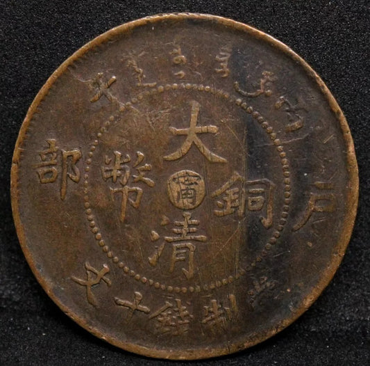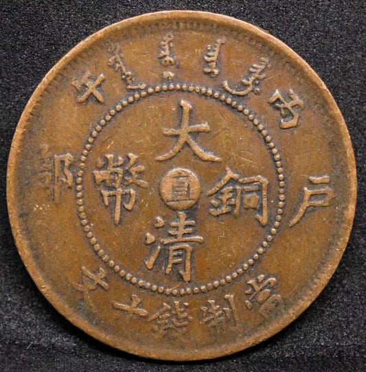 10 Cash 1905, Kiangnan China/chinese Province. Y.138. Dash in 10 cash rare. VF