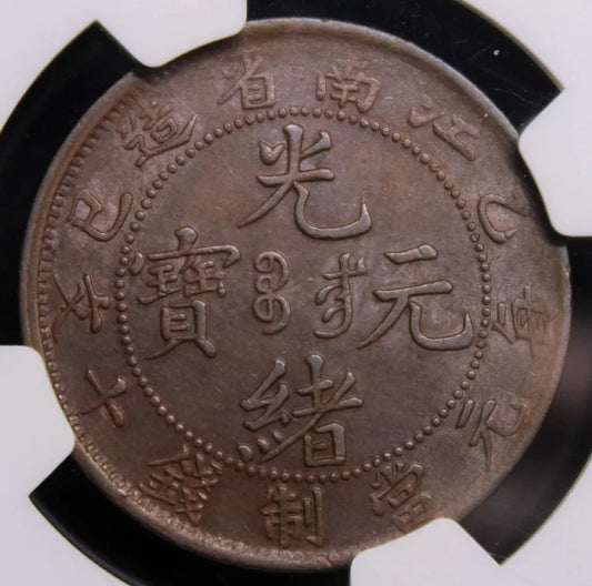 10 cash 1908, Kiangnan China/Chinese Coin. Y-10k.13 NGC AU58 BN
