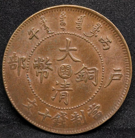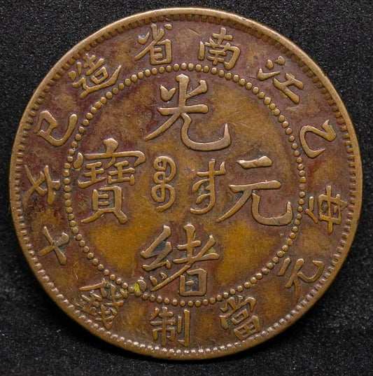 10 Cash 1905, Kiangnan China/chinese Province. Y.138. Rare Variety with dash. AU