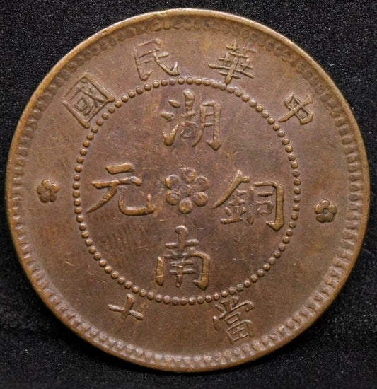 10 Cash 1912, Hunan China/Chinese province. Y399.4 Concave, LG rosette