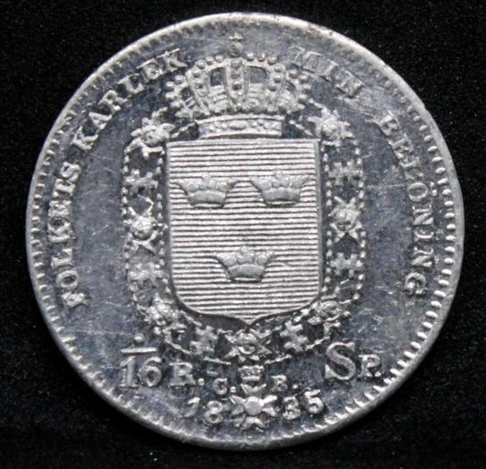1/16 Riksdaler 1835. Sweden. Carl XIV Johan. KM-644 UNC