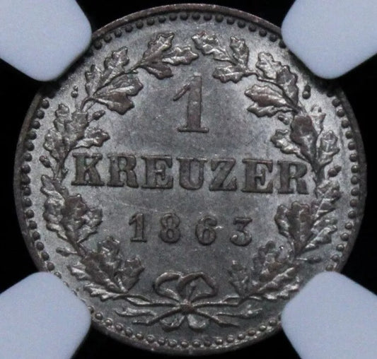1863 Kreuzer, Free imperial city of Frankfurt, Germany. UNC KM-367 NGC MS63