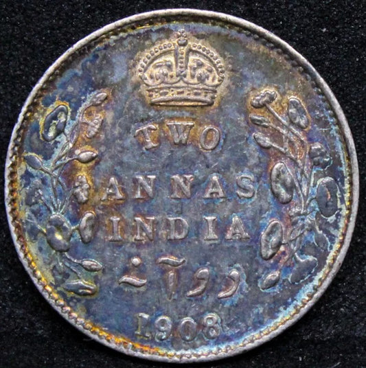 1908 India-British 2 Annas George V KM 505 EF +colour