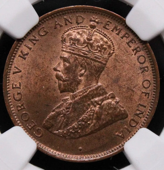 1 cent 1912, Ceylon George V. KM-107. UNC NGC MS62 RB