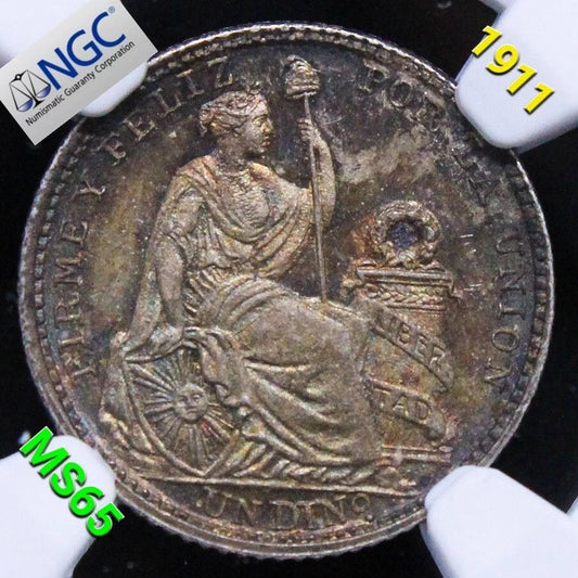1911 FG/JF Dinero. Peru Silver Coin. KM-204.2 UNC NG MS65