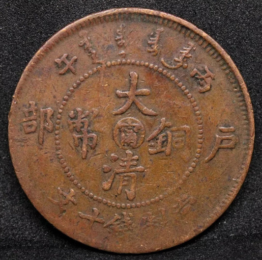 1906 10 cash, Kiangnan China Province Copper. Rare raised Mint mark. Y-10k.1