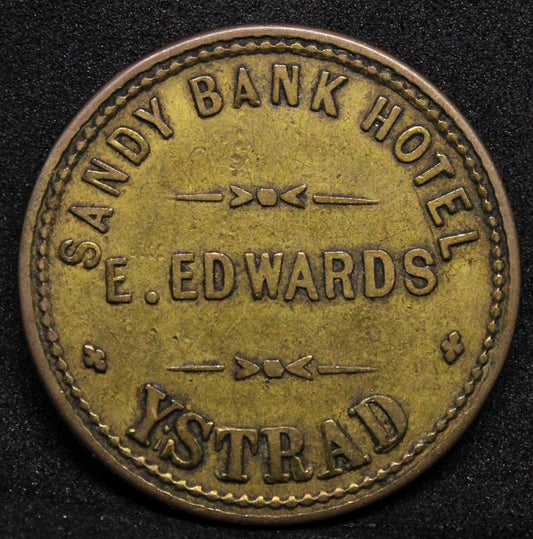 Glamorganshire, YSTRAD, SANDY BANK HOTEL, E. EDWARDS rev. 3D S.A. Daniell Makers, Lion Works Edward Street Parade Birmingham Brass 26.3mm. milled edge VF Cox 901