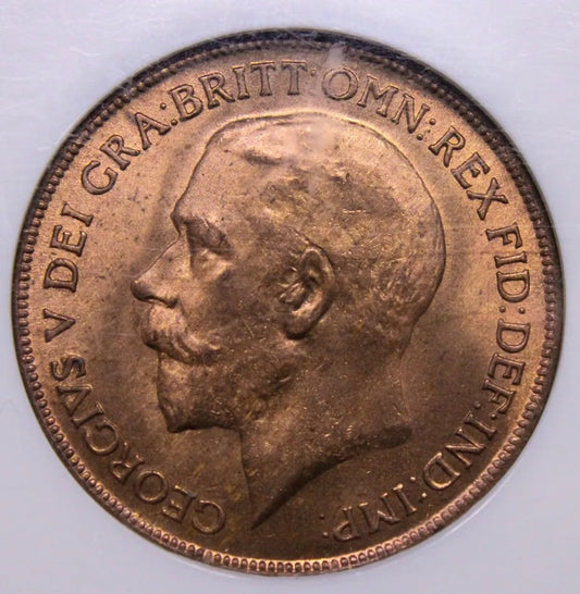 1 penny 1921, George V. S.4051 NG.C MS64 RD UNC SOLD..