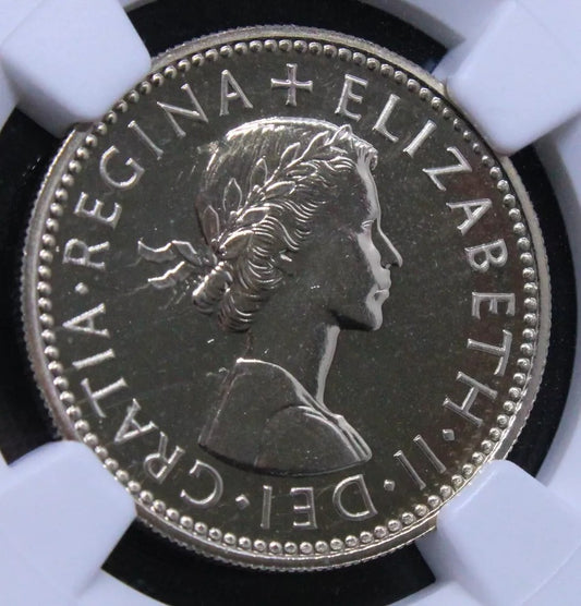 Shillin.g 1970 Proof English Crest. Elizabeth II. NG.C PF70, perfect grade. SOLD..