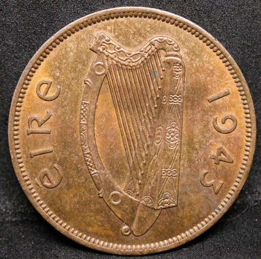 1 Penny 1943, Ireland Copper Coinage. KM-11 UNC SOLD..