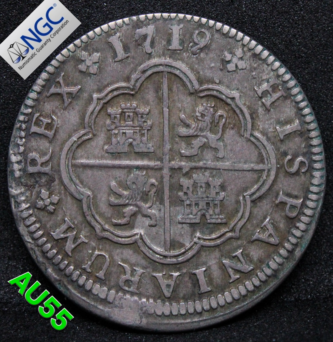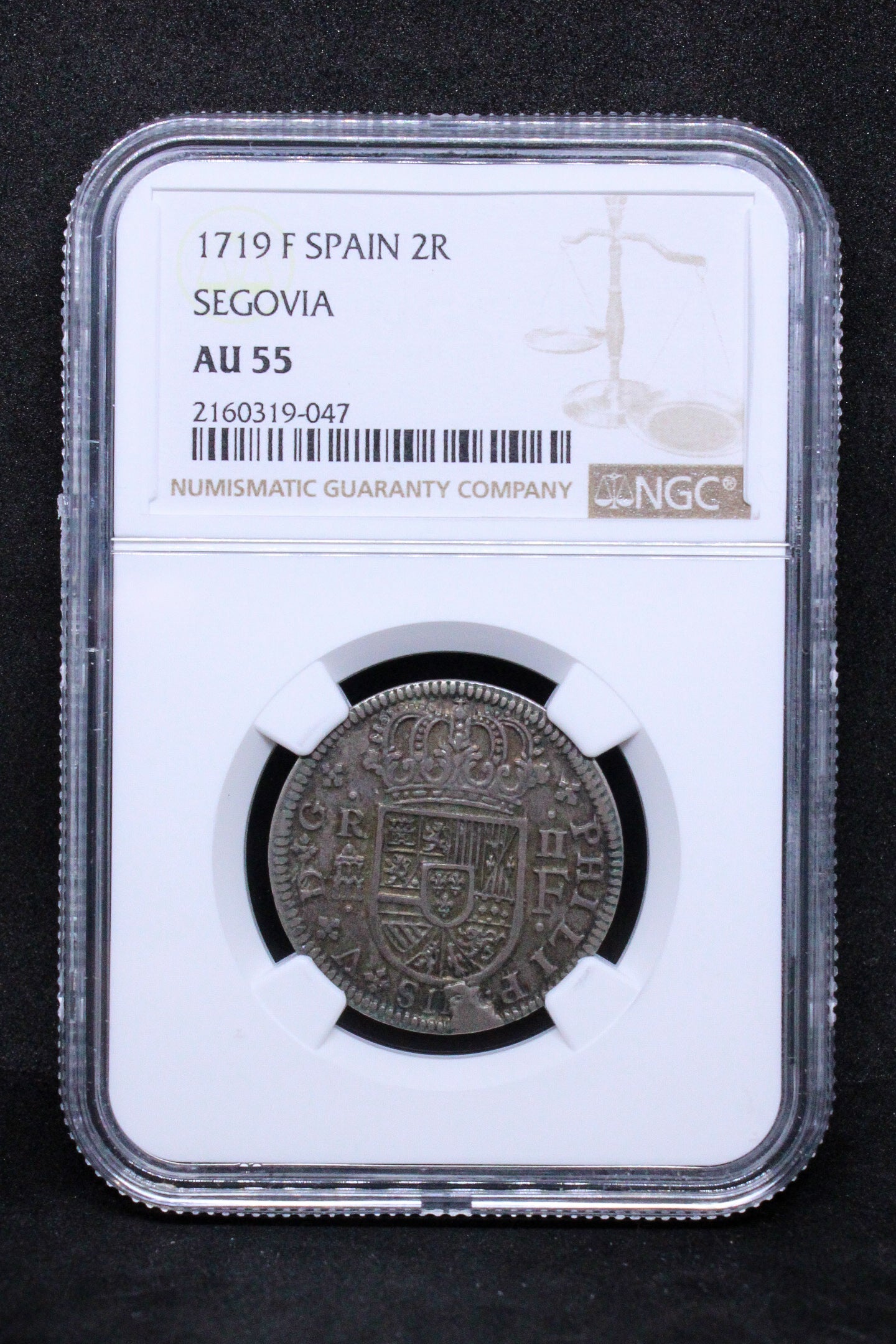 1719 F SPAIN 2 REAL SEGOVIA .NGC AU 55, TOP POP