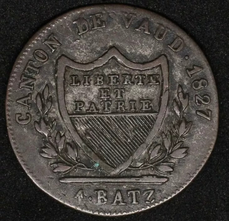 1827 1 Batzen, Canton De Vaud, Switzerland KM-20