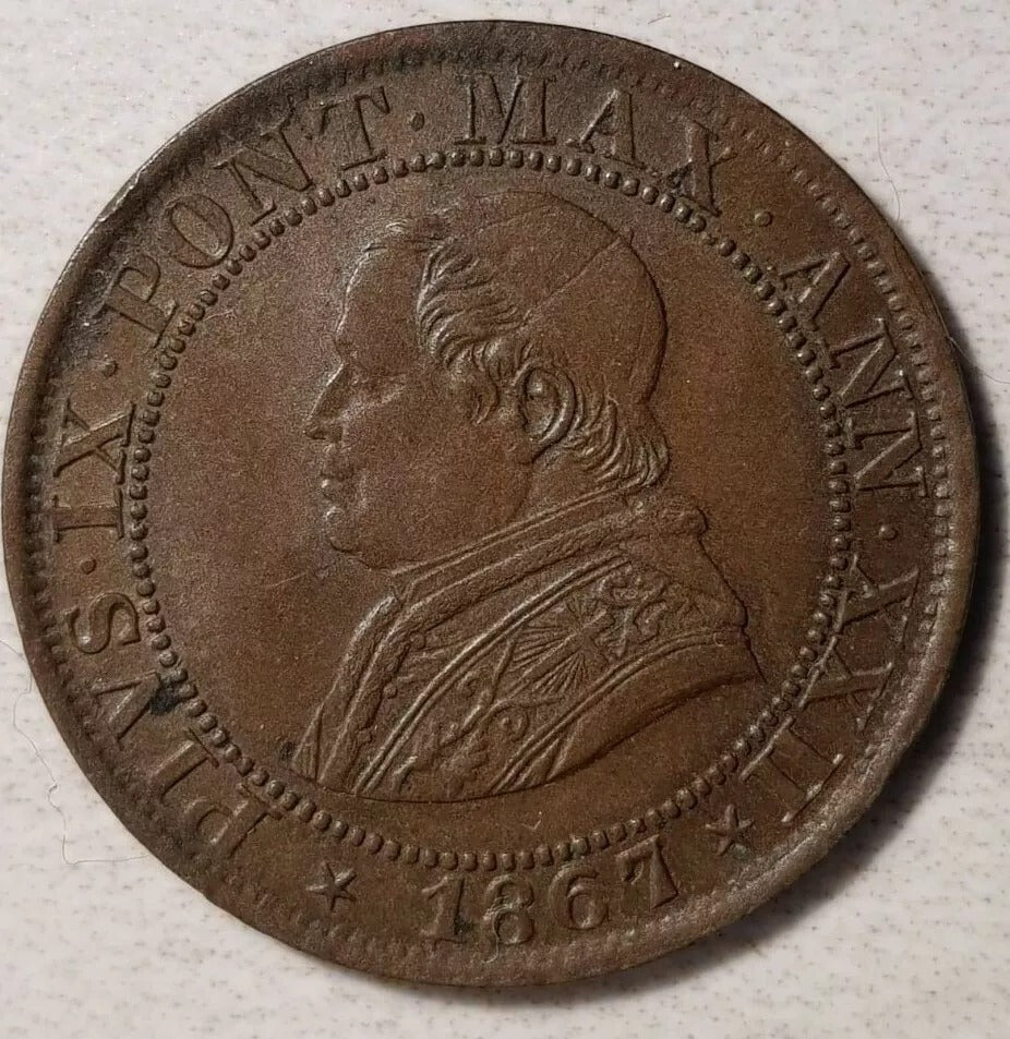 1867 Half 1/2 Soldo 2 Centesimi - Pius IX - Papal States EF