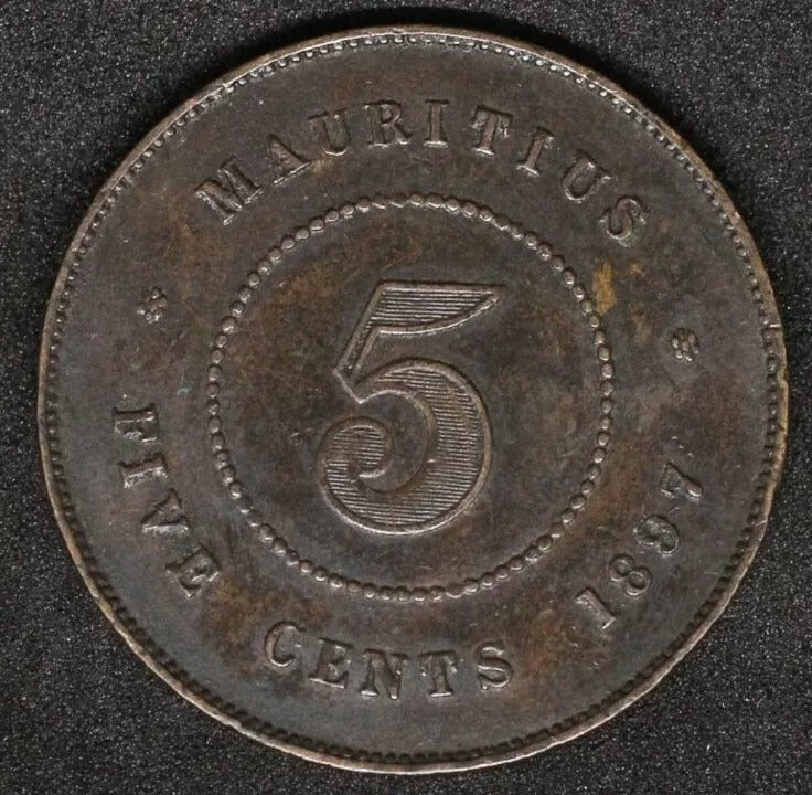 1897 5 Cents Mauritius, Queen Victoria Copper Coin GEF, KM-9