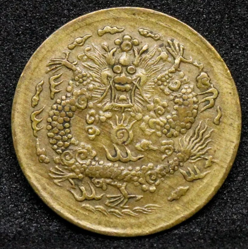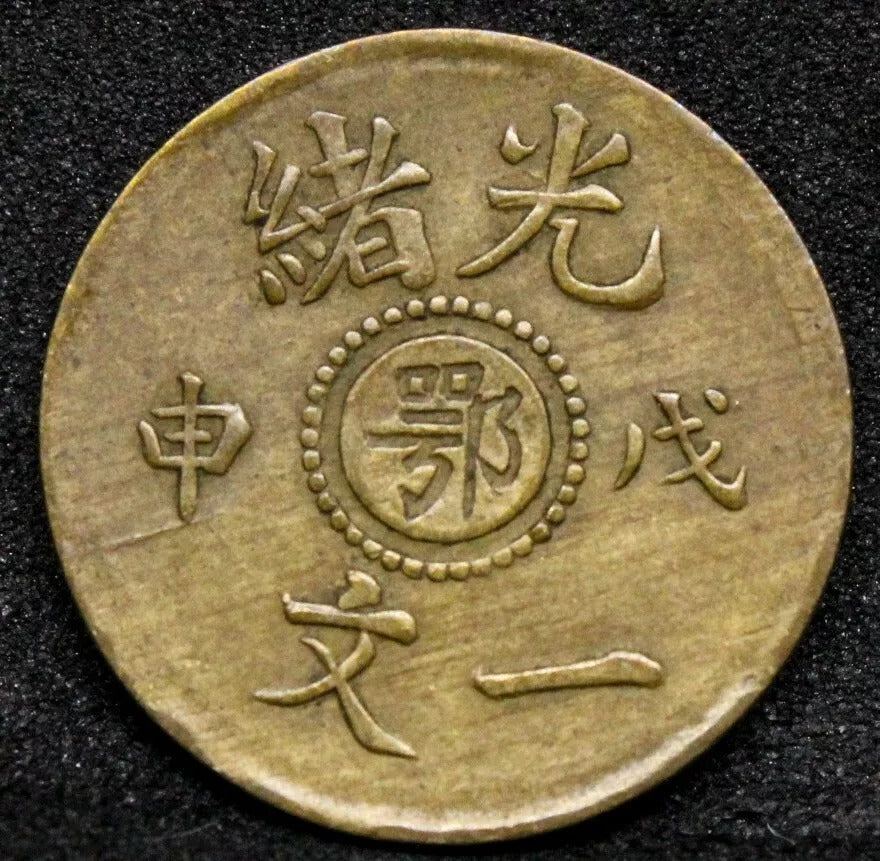 1908 Hupeh 1 Cash, Brass. Y-7j Sm Mintmark, Rare Variety UNC