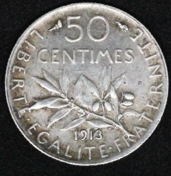 1913 50 Centimes, Frence Third Republic, UNC KM-854