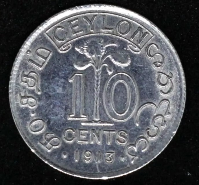 1913 Ceylon 10 Cents, George V, KM-104 UNC