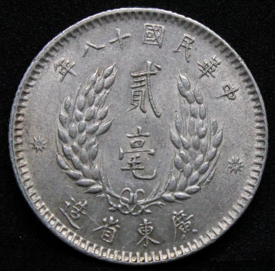 1929/Year 18 20 Cents (2 Jiao) Kwang-Tung Province Y-426 aUNC