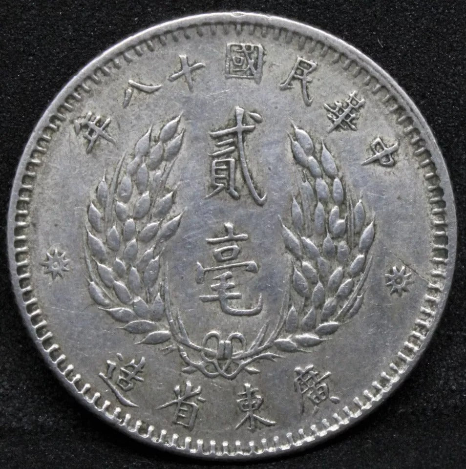 1929/Year 18 20 Cents (2 Jiao) Kwang-Tung Province Y-426 EF
