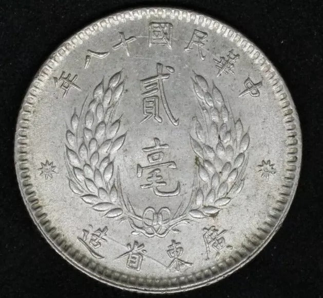 1929/Year 18 20 Cents (2 Jiao) Kwang-Tung Province Y-426 UNC