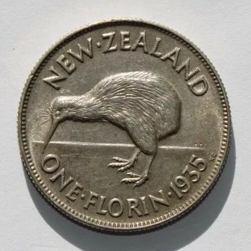 1935 New Zealand 2 shilling Florin George V UNC, rare low mintage 750k