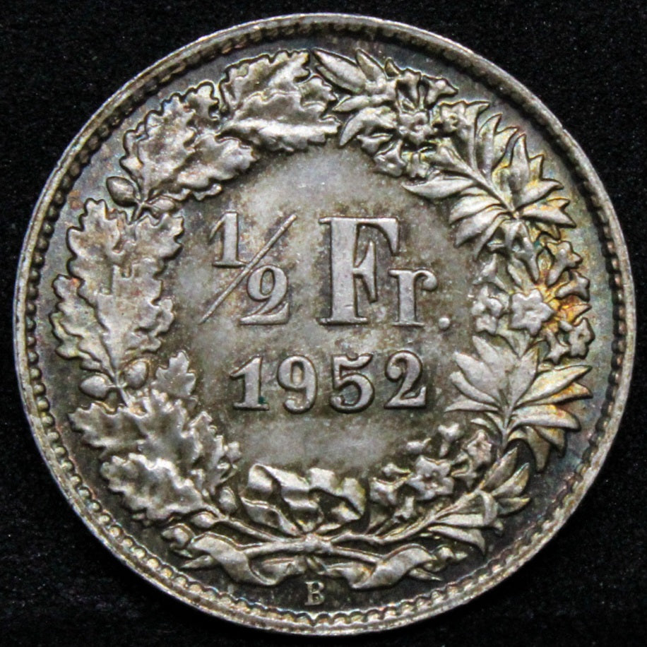 1952 Switzerland 1/2 Franc KM# 23 UNC +toning