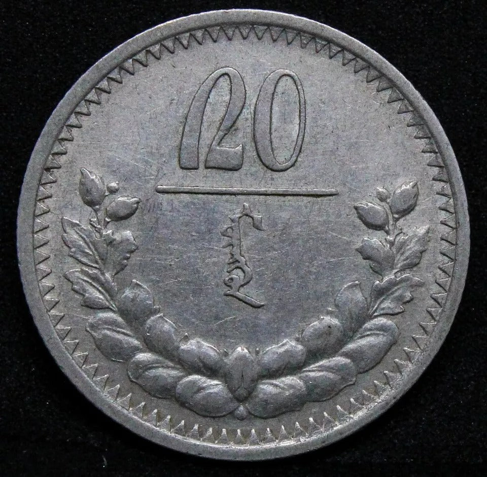 20 Mongo 1925, Mongolia. St. Petersburg mint. KM-6 EF