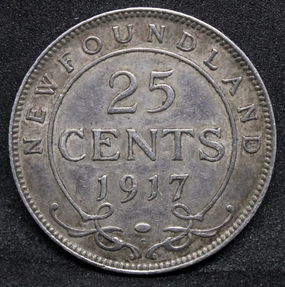 25 Cents 1917-C, Newfoundland. King George V. KM-17. EF