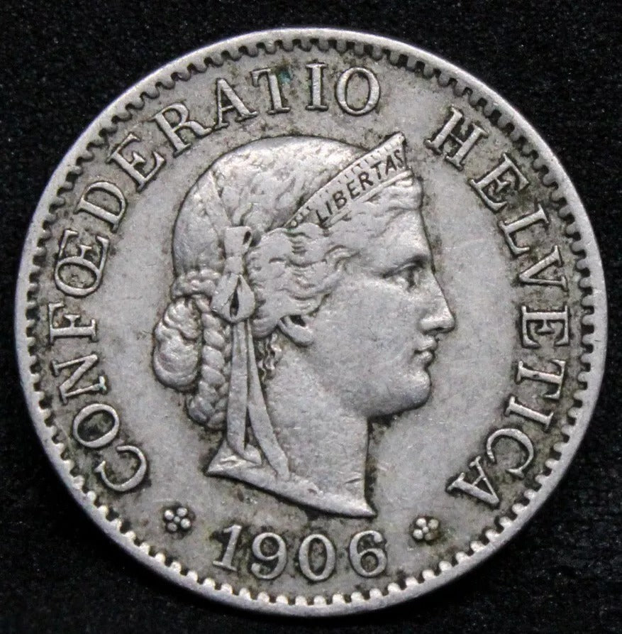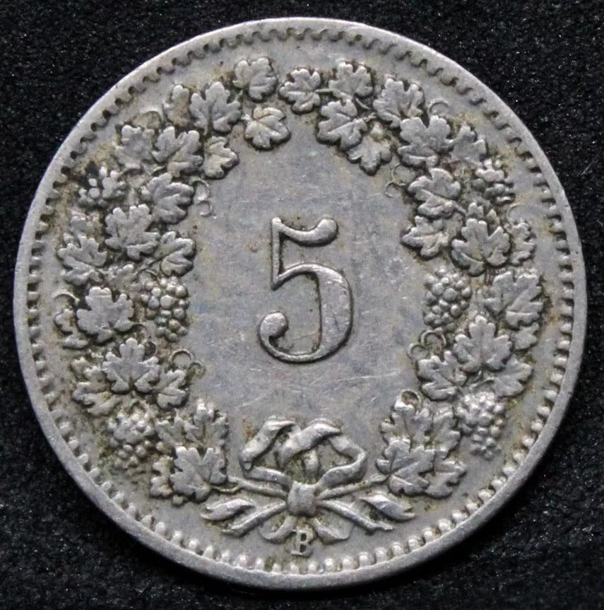 5 Rappen 1906 -B. Switzerland CuNi coin. KM-26. VF.