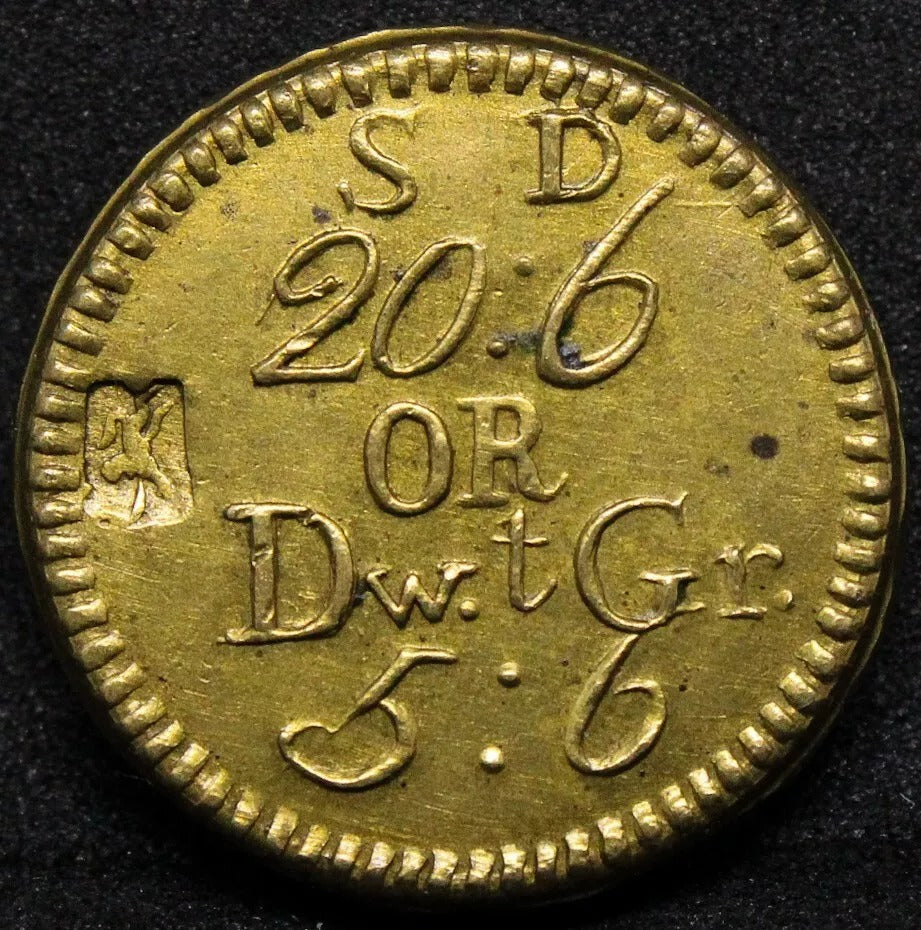 Brass Coin Weight - 1772 George III S.D. 20:6 or DwtGr. 5:6, higher grade+lustre